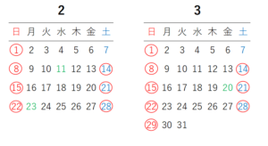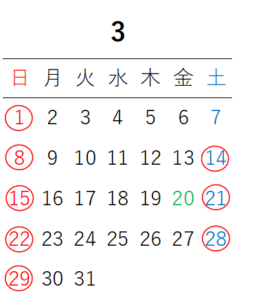 お知らせ news TOP > お知らせ > 🔶休業日のご案内🔶 🔶休業日のご案内🔶 平素はリサイクルプラントをご利用頂きありがとうございます。 〇印の日が2月・3月の休業日です。 2月11日・2月23日・3月20日の祝日は通常通り営業いたします。